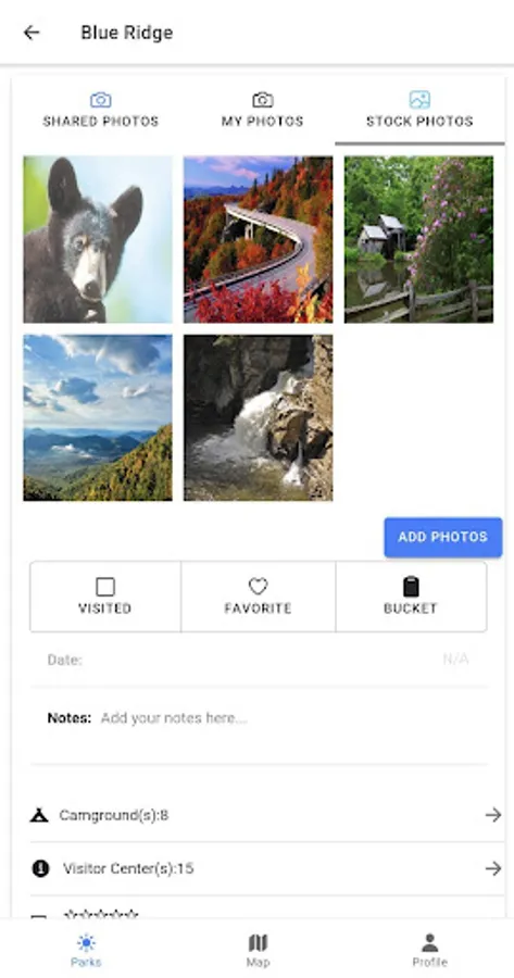 - Ability to add a date when the National Park is visited. This will help you keep track of the date you visited the park.