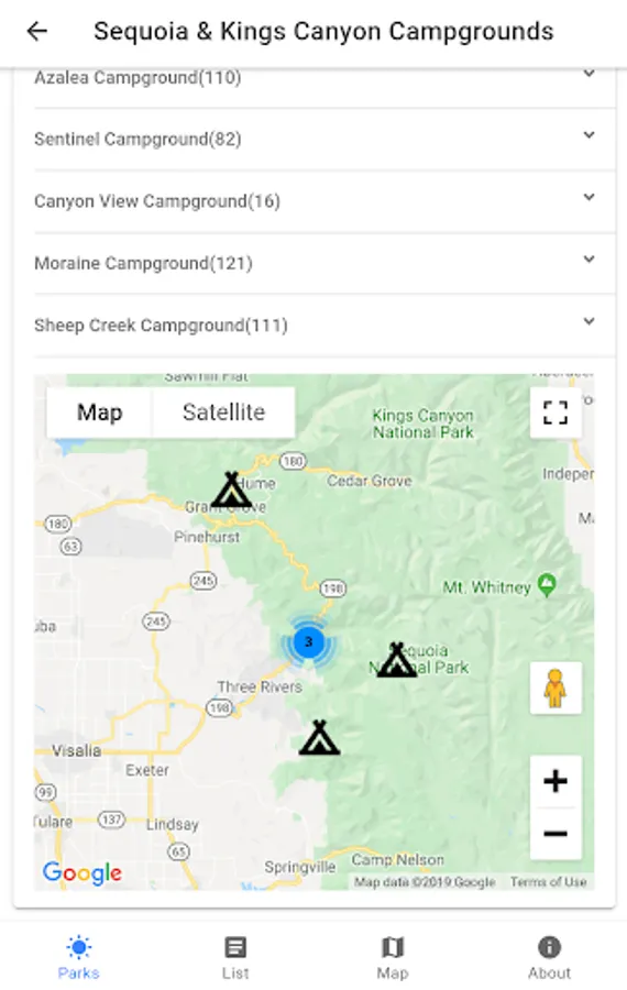 - Show campsites details including accessibility, amenities, directions, regulations, and etc..