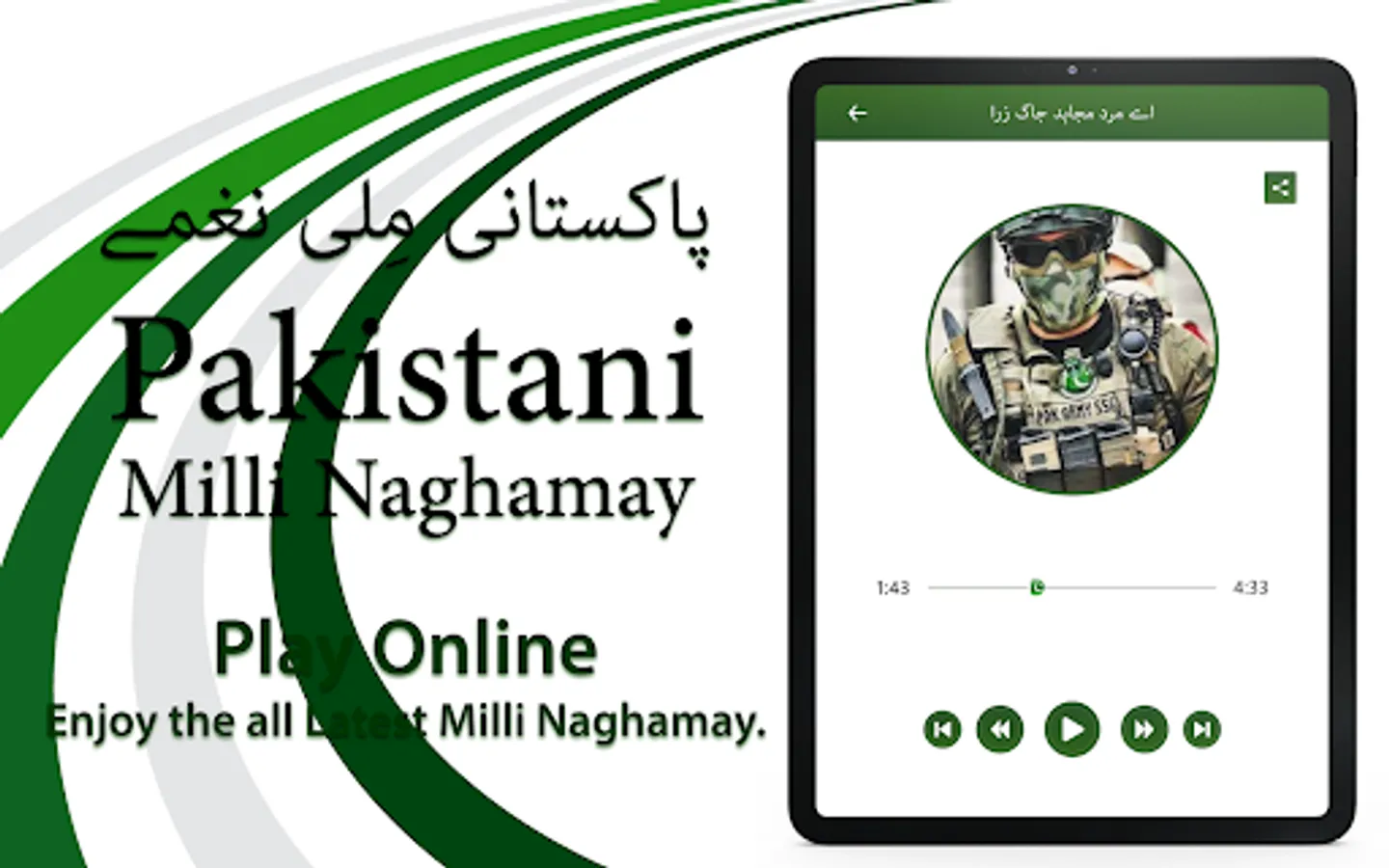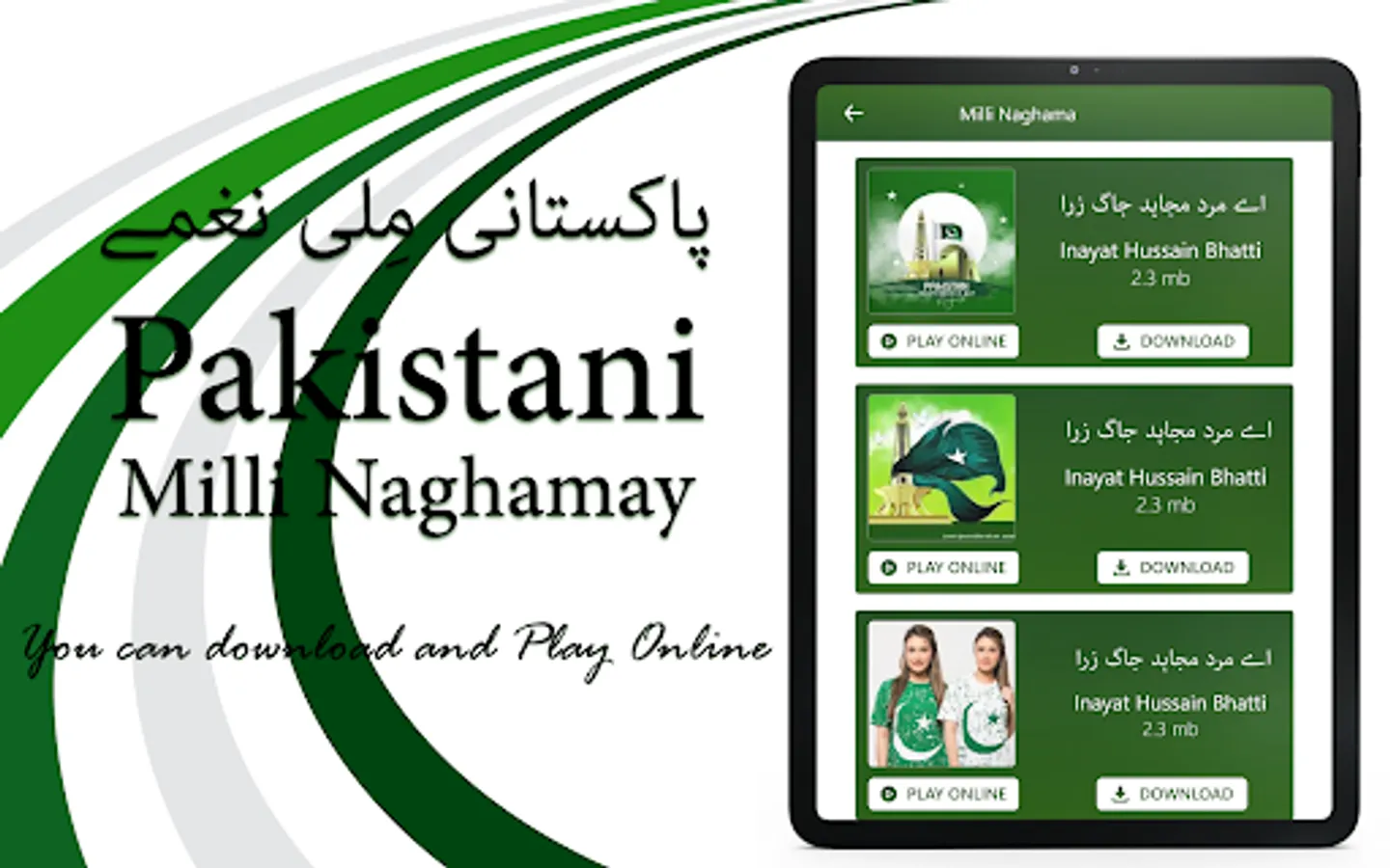 Pakistani independence mili nagma day 14 august azadi song Pakistan love Song app is designed to express love for the country. We bring 14 Azadi Pakistan mili naghma in Urdu, Offline august independence mili Azadi nagma with audio player and download option. Independence Day mili nagma khel Pakistani is the best ever dedication Pakistani apps for all those who love Pakistani qomi tarana. August 14 love Pakistan song player app made to celebrate14 august 1947 Khel Pakistani Independence Day on the great event of 14 august Azadi Pakistan. 90s Pakistan songs audio player app provides the best patriotic Azadi songs august with an mp3 player.