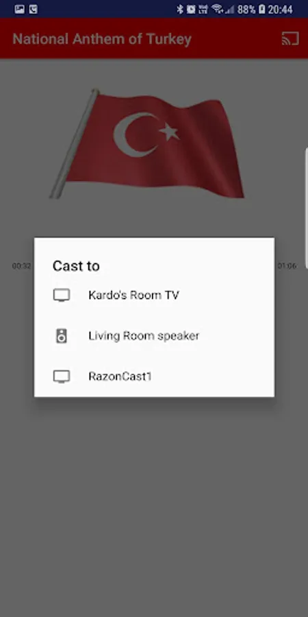 You can listen National Anthem of Turkey anytime you want and you can cast to chromecast or google home devices.
