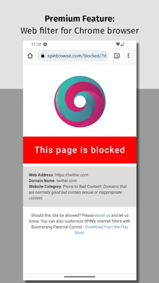 Web Filter for SPIN & Chrome combines a community driven web filter to help in the struggle many humans have against internet pornography, adult content, NSFW, racist or cult content. Web Filter for SPIN & Chrome also includes a powerful app blocker with daily time limits.