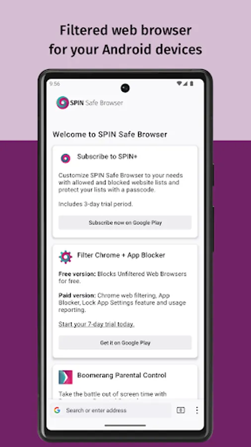 2οΈβ£ Looking to also block apps, set time limits on your browsing? Get Web Filter for SPIN & Chrome which brings our web filter to the Chrome browser and a powerful app blocker with daily time limits for your digital wellness on your Android phones and tablets. Try our Premium version for free with a 7 day trial. Get it from Google Play: https://play.google.com/store/apps/details?id=com.nationaledtech.managespin