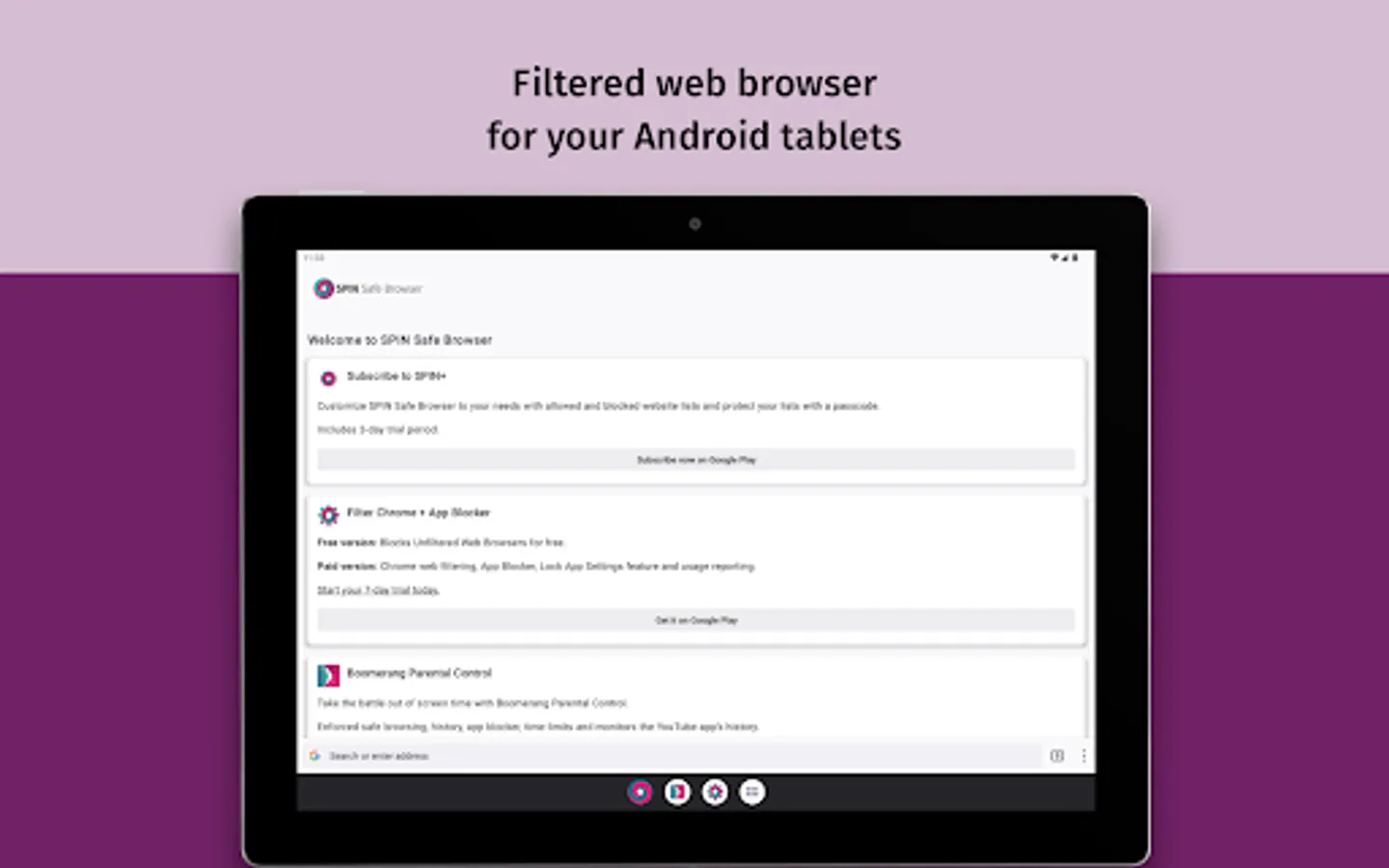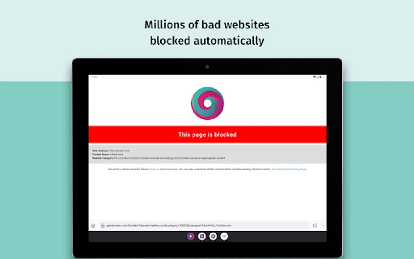 SPIN is a fully featured web browser with integrated internet filters that even blocks the grey area of websites that are normally good but are prone to bad content. Even VPN apps cannot bypass our filtering; also a great edtech learning solution for education institutions using Android devices.