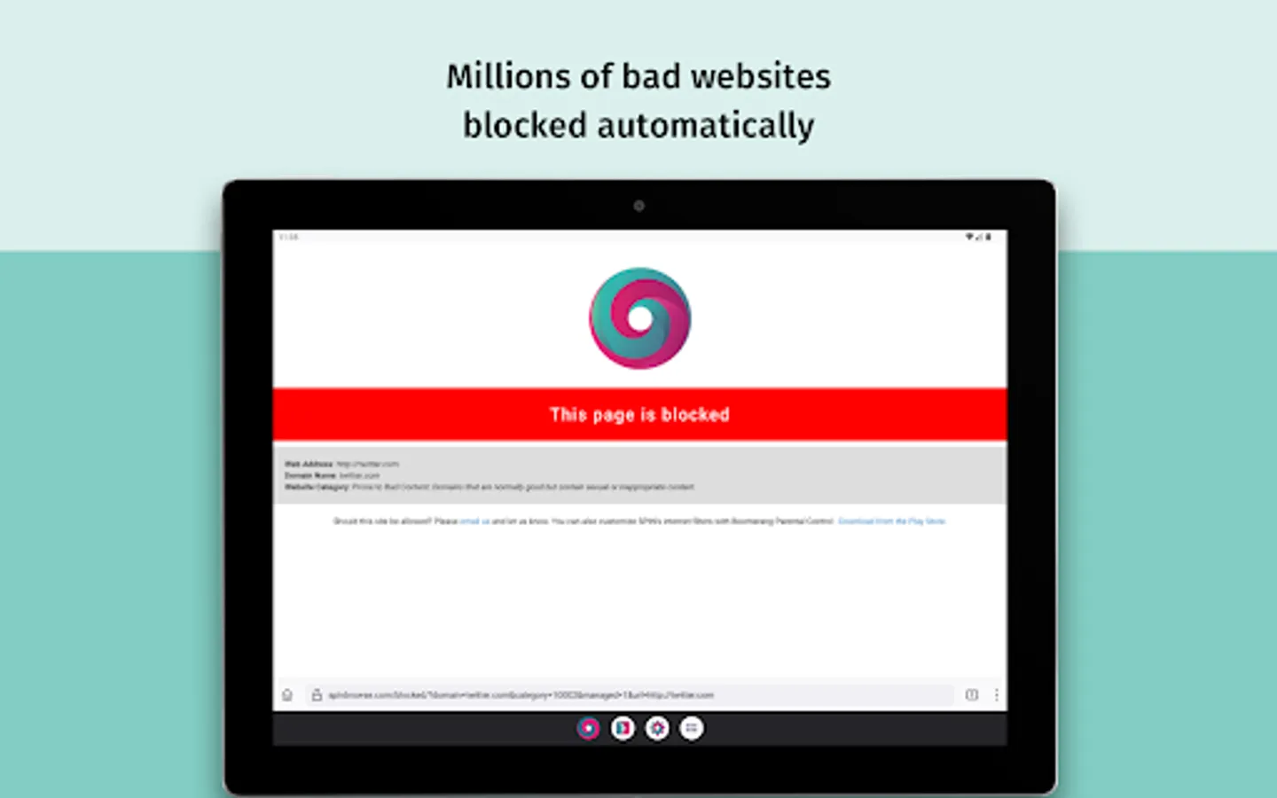 SPIN Safe Browser is a web browser with built-in web filtering, designed to keep you safe from inappropriate content on your Android phones and tablets. Content such as nudity, pornography and other tasteless content are all automatically blocked.
