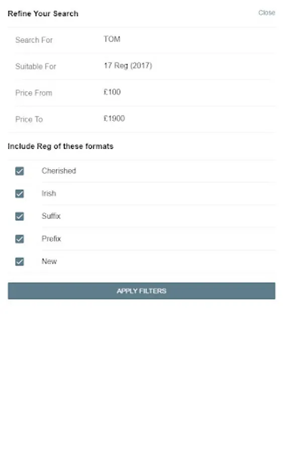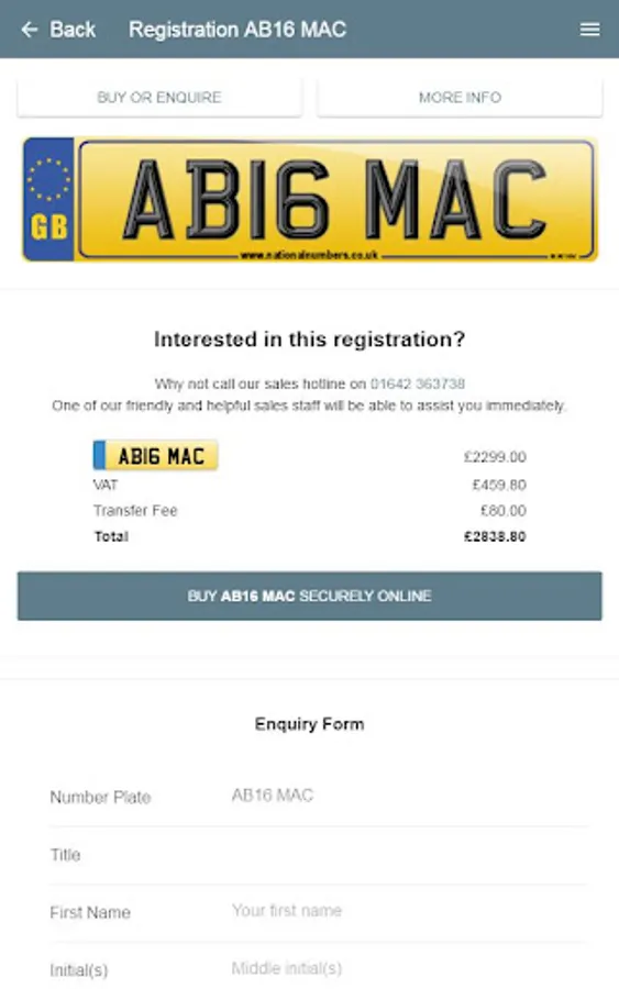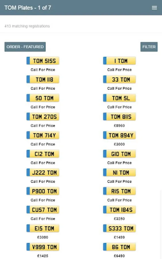 Simply enter your name, initials, a lucky number... whatever you like, and see matching UK number plates available for your vehicle. With advanced filter and sort options, you can whittle down the registrations to those suitable for your vehicle, your budget or your tastes.