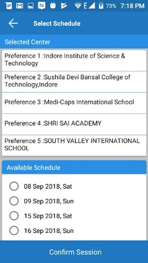 Application is for Students who are participating in entrance examinations for admission/fellowship in higher educational institutions to select the exam centre of their choice with exam schedules.