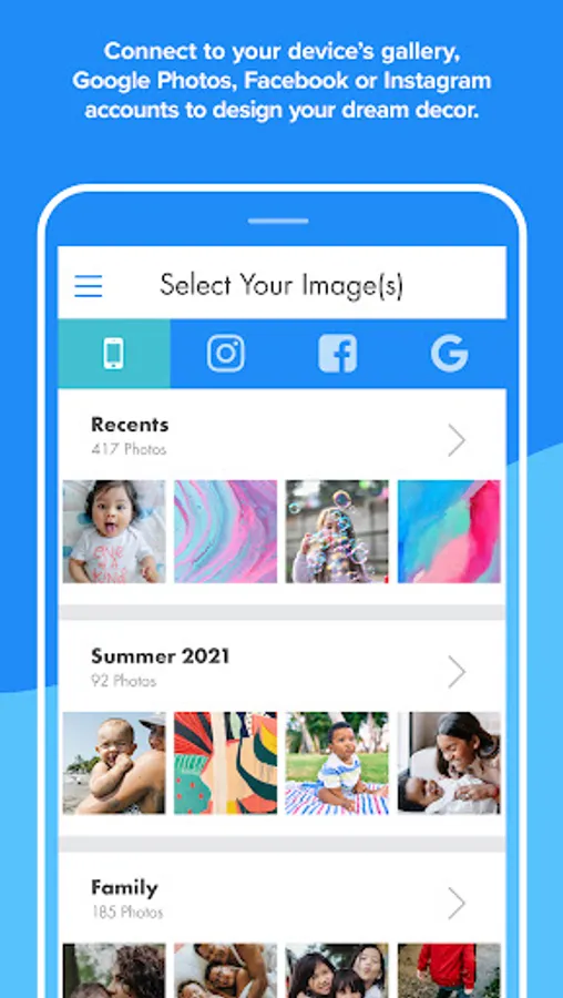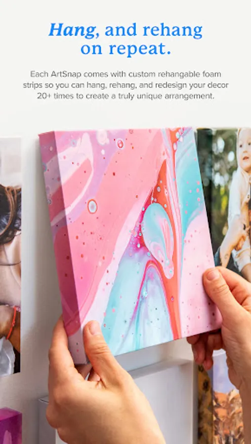 Print and display your favorite photos from your device Gallery, Instagram, Facebook or Google Photos on ArtSnap - an 8x8” canvas print that ships flat and free, and assembles in a snap.