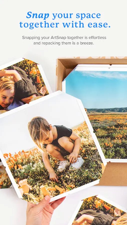 How does ArtSnap work? It’s simple. Download the ArtSnap app on your preferred device. Sign-up and connect to your favorite social media pages to access your cherished digital photos in seconds. Then, customize as many ArtSnap canvas prints as you desire. When you receive your package, which doubles as ArtSnap print storage, remove each frame, snap together, and hang!