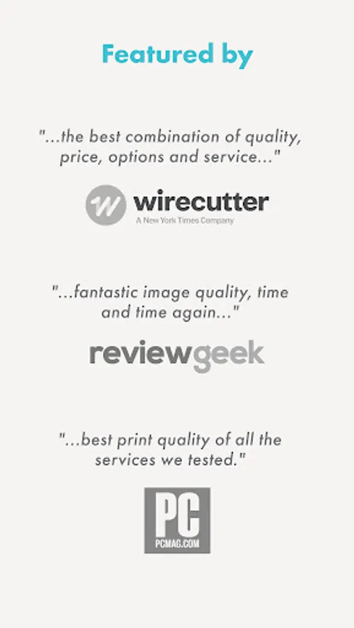 Print your favorite images in one of our sixty sizes on one of our three professional quality paper types. And, inside the app, you can even get exclusive discounts, sneak peeks, and fun giveaways of photo accessories.