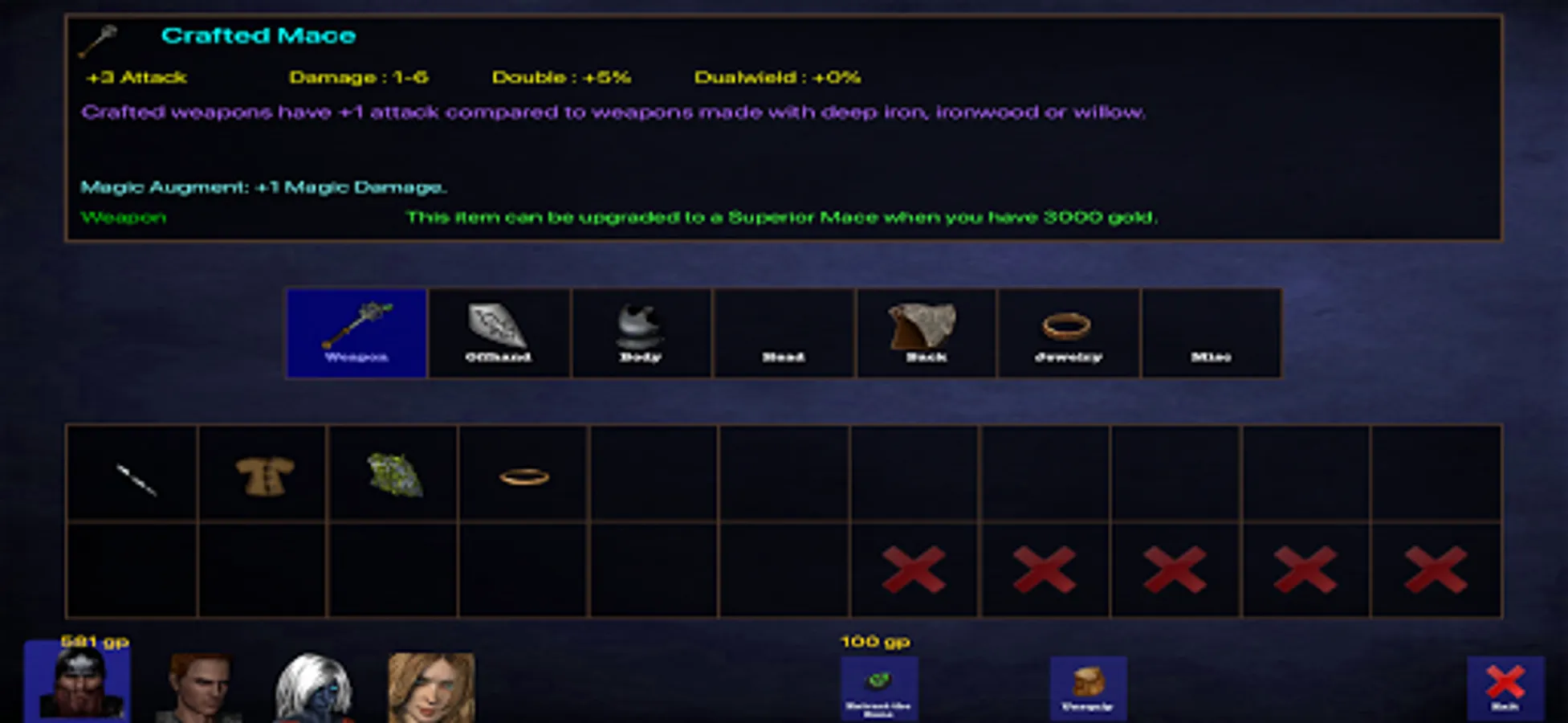 With over 250 unique abilities, 8 gods and the ability to craft weapons, shields, armor, holy symbols and magical staffs, there are almost infinite possibilities for combining different types of characters within the party.