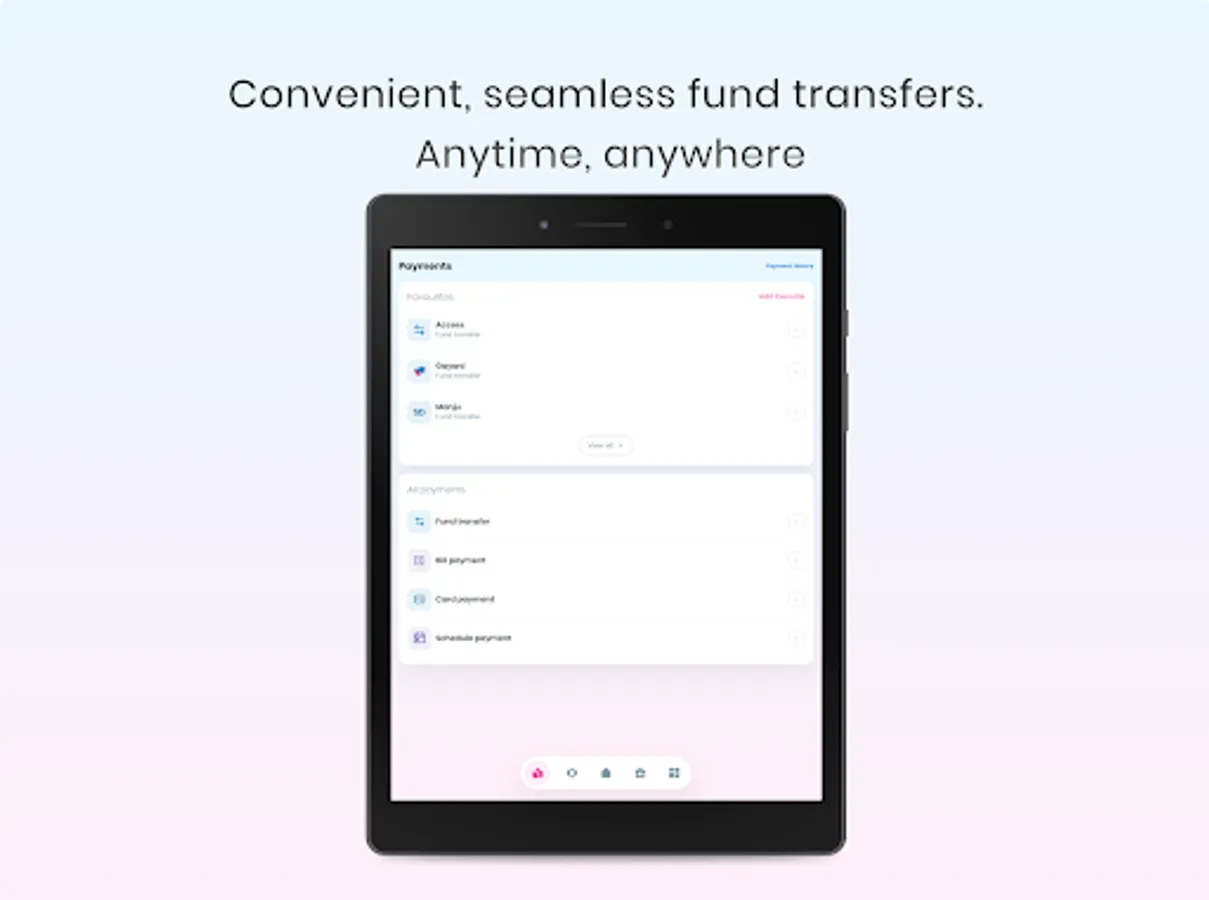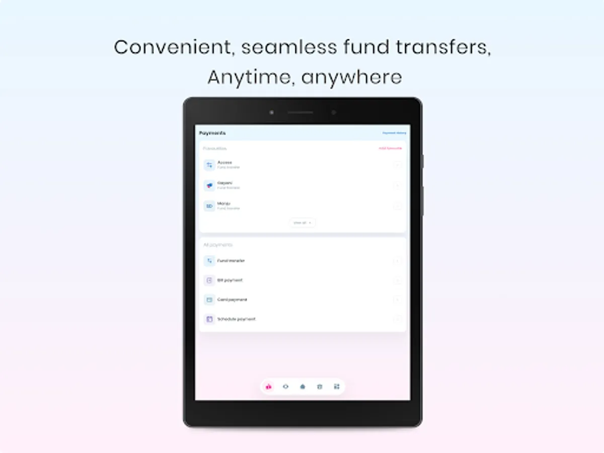 - Schedule Future Payments including Recurring Fund Transfers, Bill Payments and Card Payments.