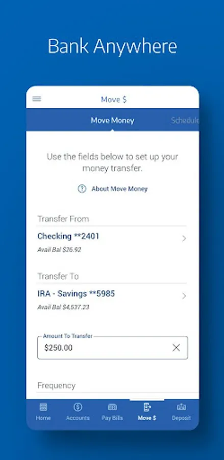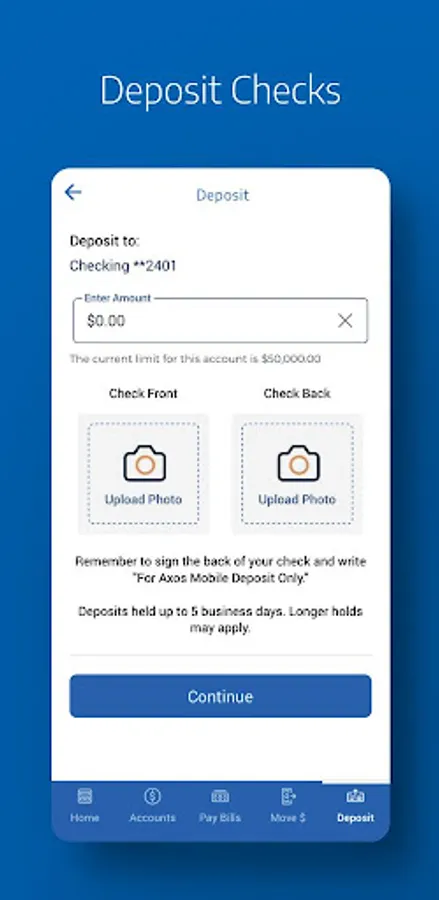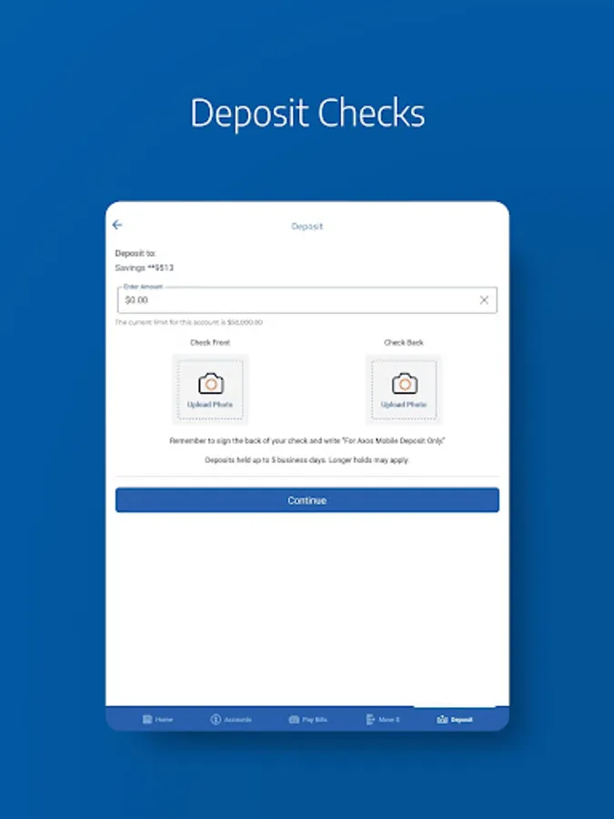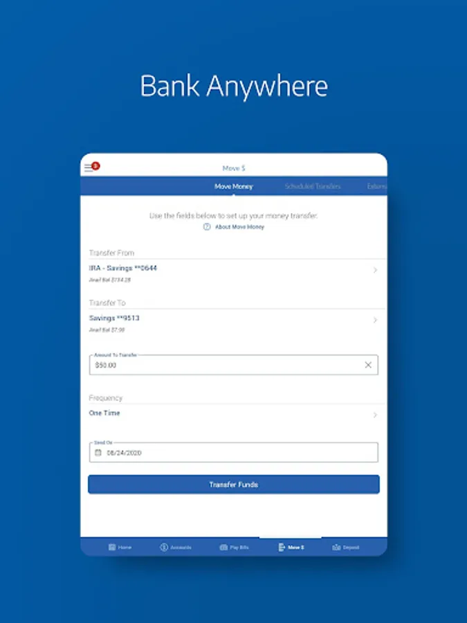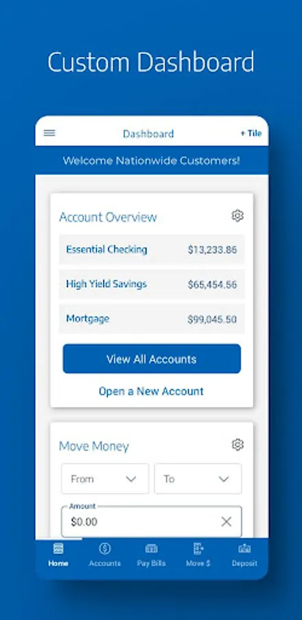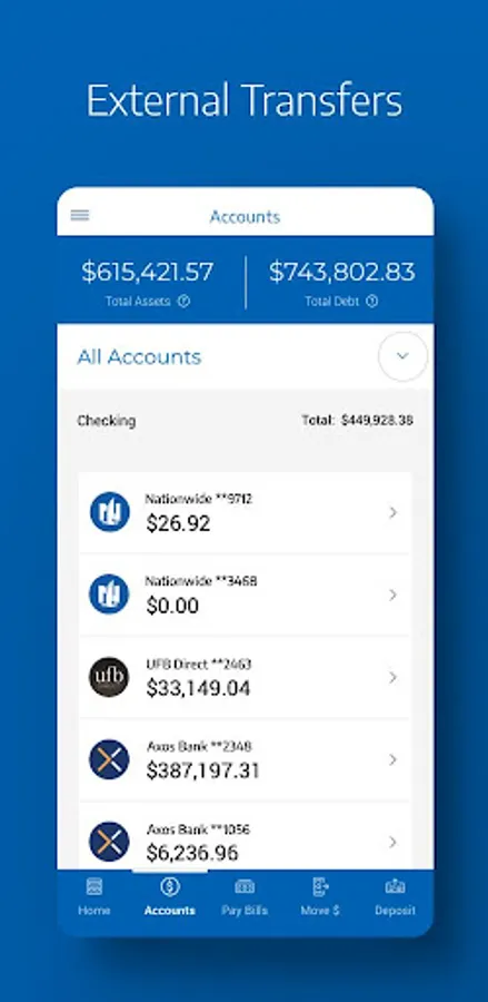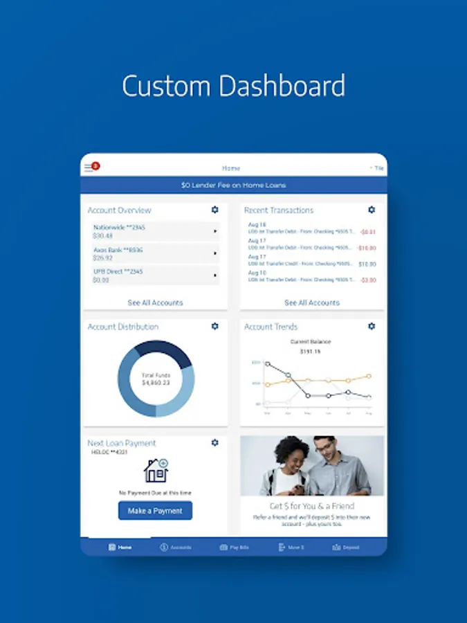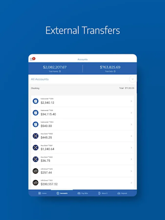 Within the Axos Bank for Nationwide mobile banking app, you can check your available balances, view transaction history, transfer funds between accounts, pay your bills and view and activate your cash back offers.
