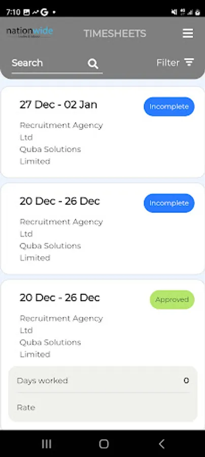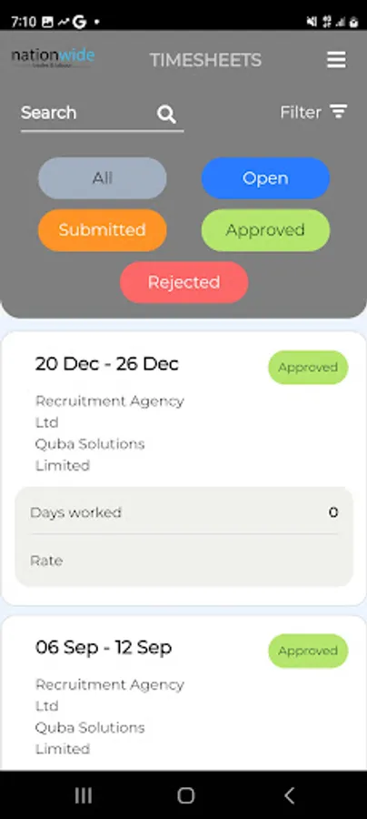 Allows Nationwide Trades & Labour's clients to submit and approve timesheets conveniently from their mobile device. Candidates can submit units of work, Clients approve/reject with notification