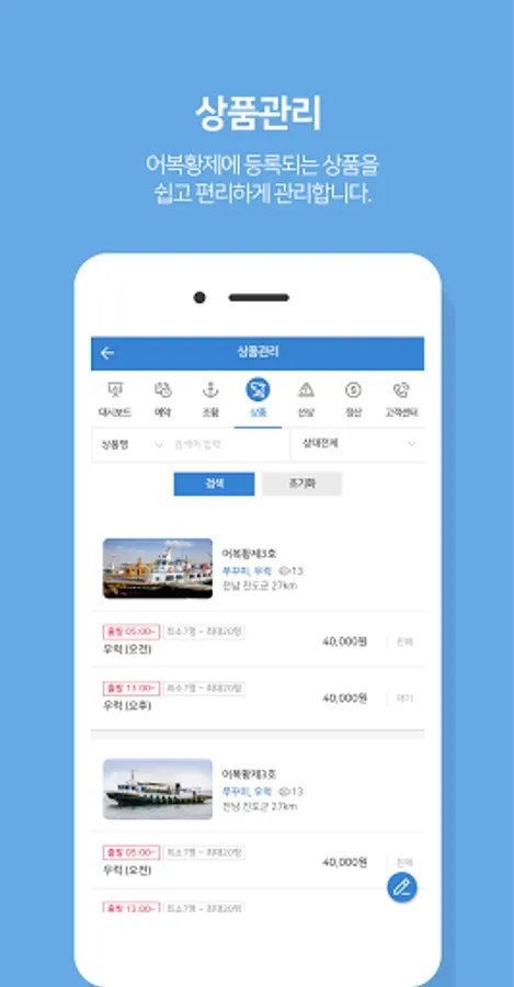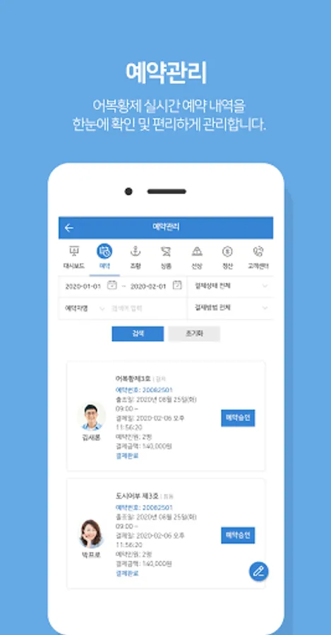 It is a management app that allows business owners who are registered as businesses in the Eobok Emperor App to easily and conveniently manage all information related to business management, such as reservation reception, product status, settlement, and management.