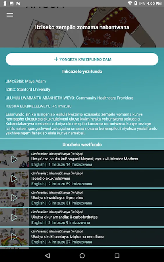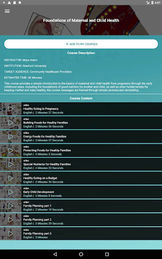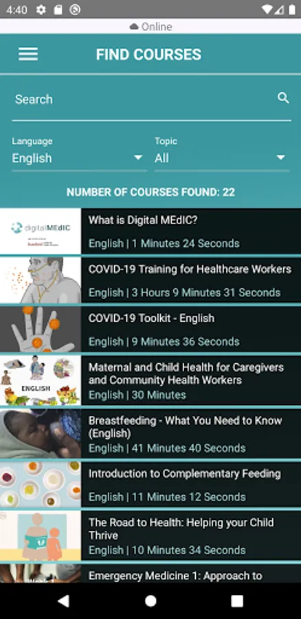 - Courses and other informational content on COVID-19, emergency medicine, breastfeeding, nutrition, and more.