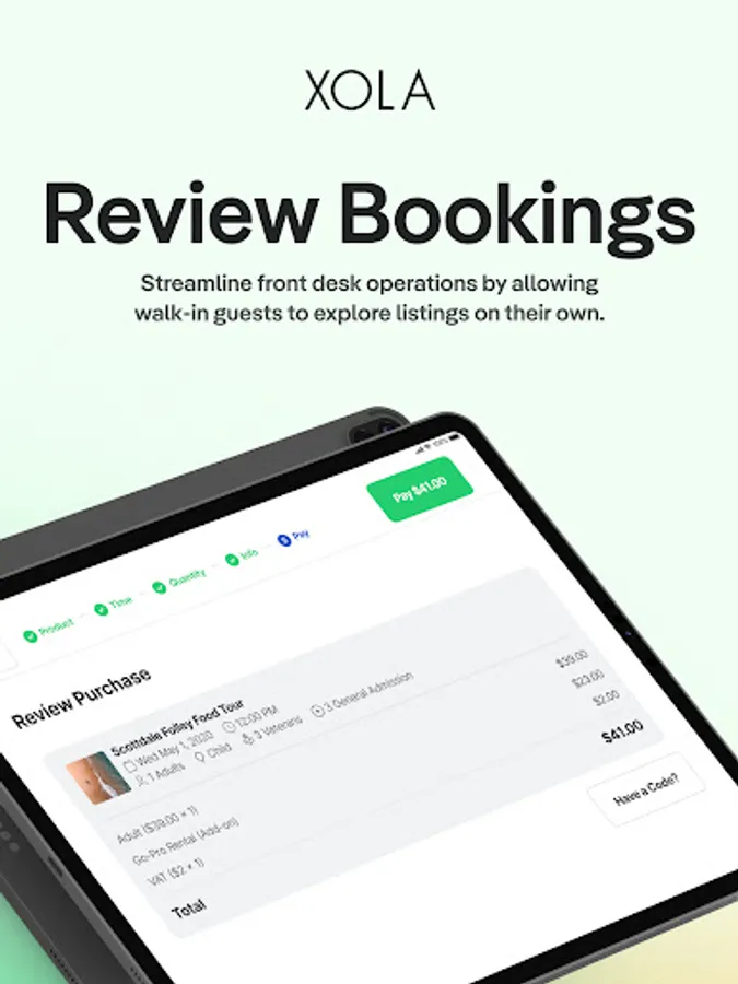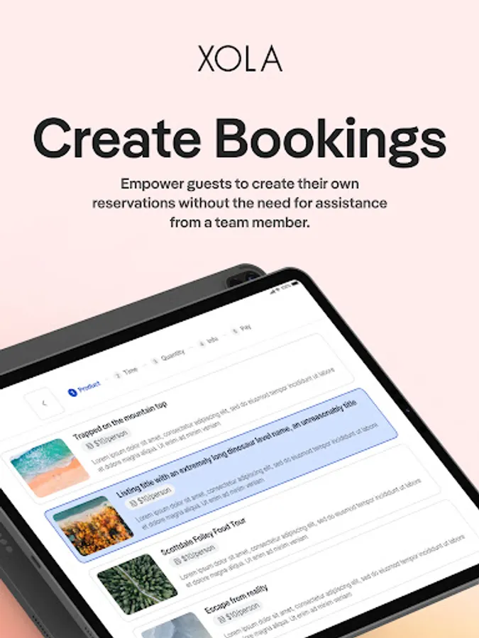 * Guest self serve booking - Allow guests to book in seconds directly on the Xola Kiosk