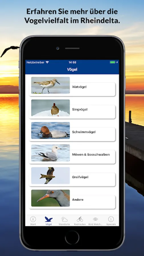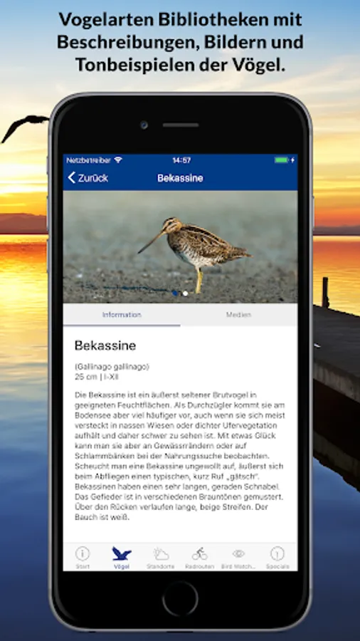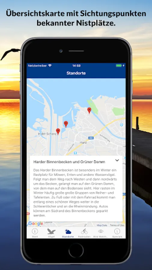 Birdwatching observation points and the connection from the Hotel am See are clearly visualized directly on the map and thus ensure always an optimal overview. In addition, the search for the birdwatching observation points will be simplified enormously. The various species are illustrated, described and can be heard by means of sound files, this simplifies the viewer a clear improvement of recognisability. Located on the lake as the owner of this app each has a special treat for bird of the month for travelers, frequent flyers and short or long holiday ..