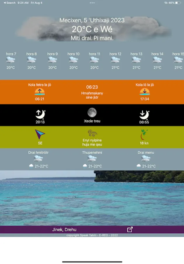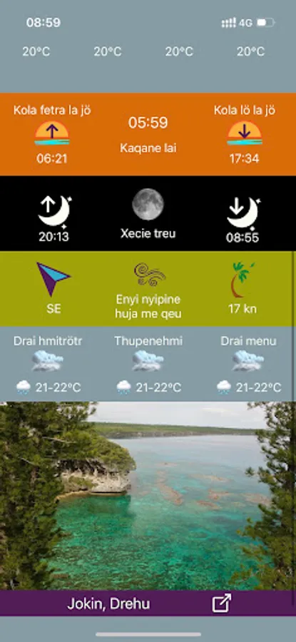 Times of sunrise and sunset and moon.