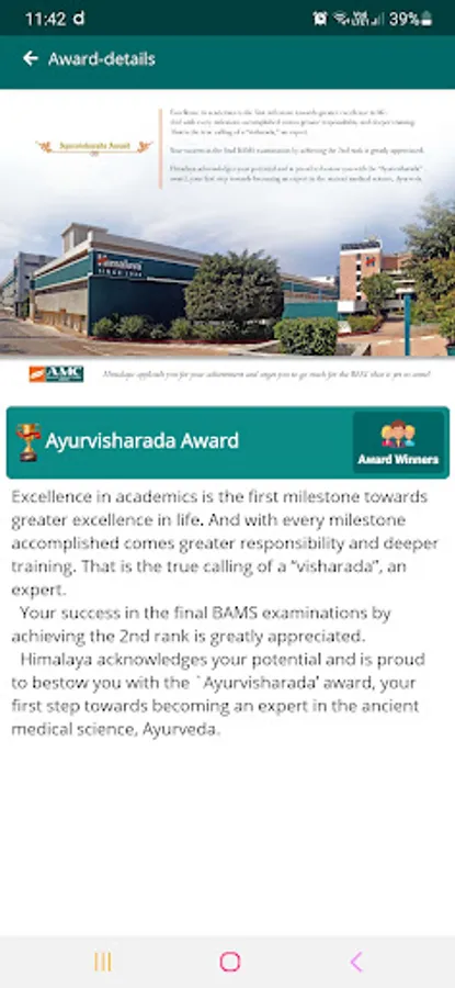 • Jivaka and Ayurvisharada awards: Awards instituted to recognize and reward academic excellence in over 140 Ayurveda colleges across India. The awards are granted to the first and second rank holders of the Final BAMS exams in each of these colleges every year.