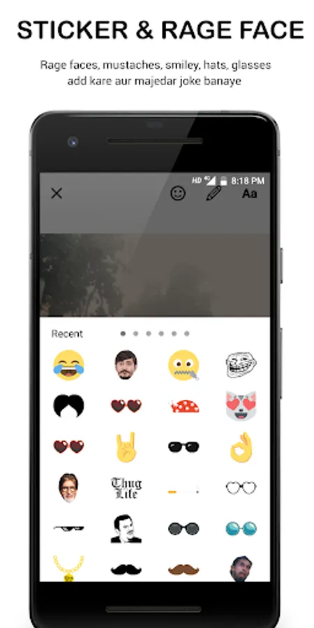 ✓ Add stickers to memes - Modi, Kohli, Rahul, rage faces and a lot more