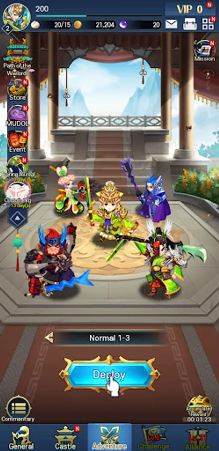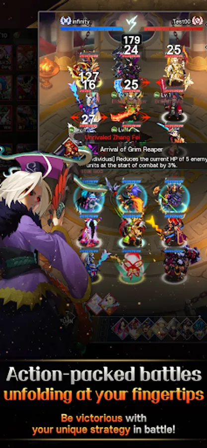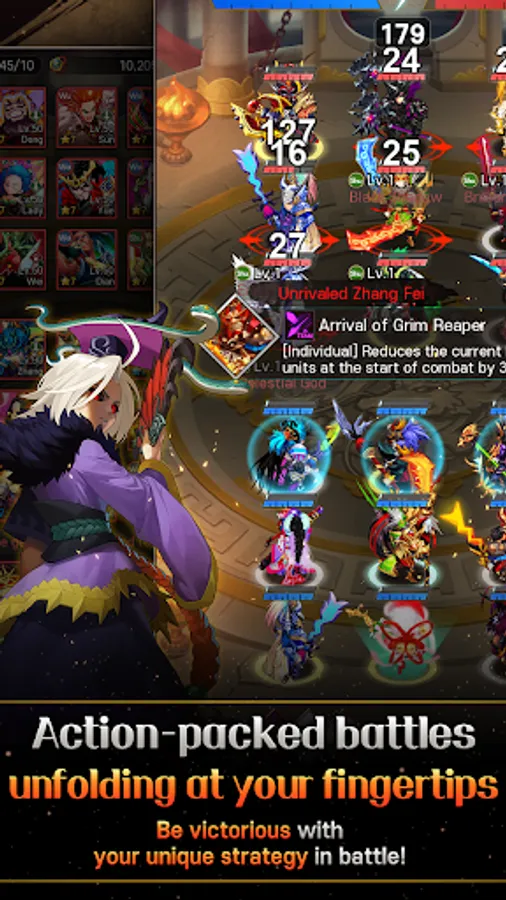 Build your own invincible army through General Summon, General Combination, General Promotion, Equipment Upgrade, and Research system!
