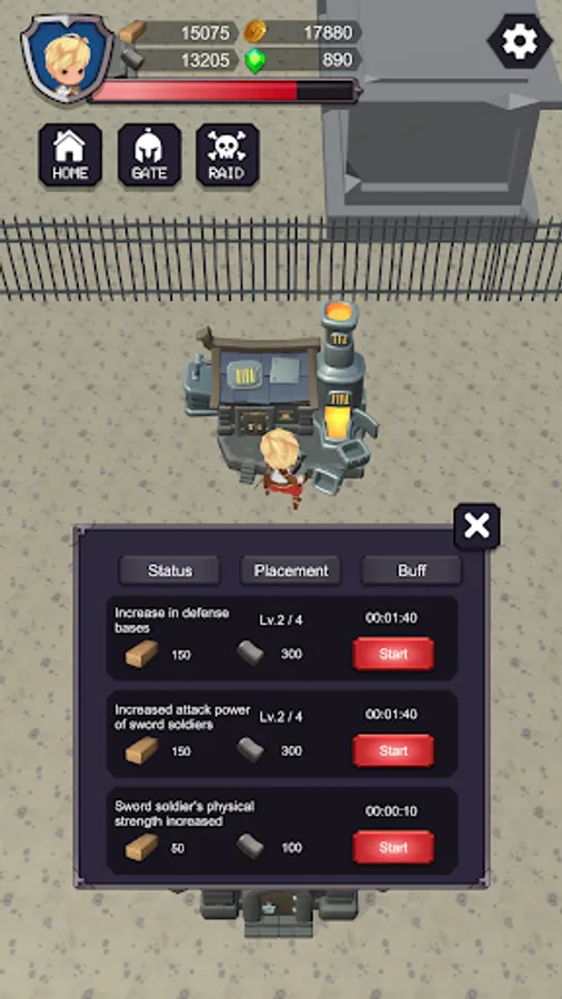 When more resources are collected, level up your buildings. Create powerful facilities.