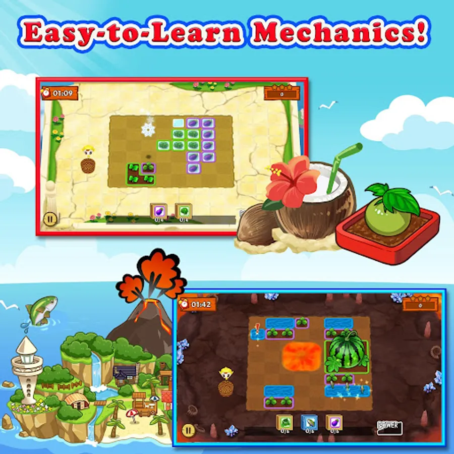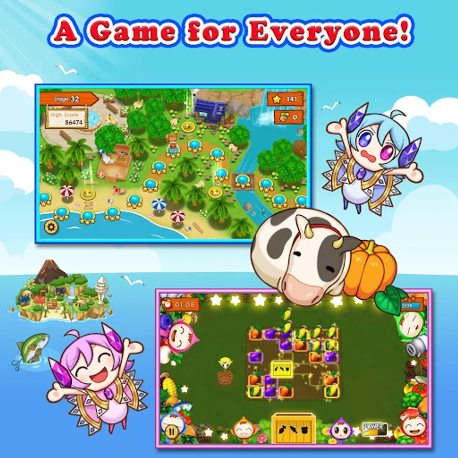• Take on farm, beach, Underworld, and Skyworld levels!