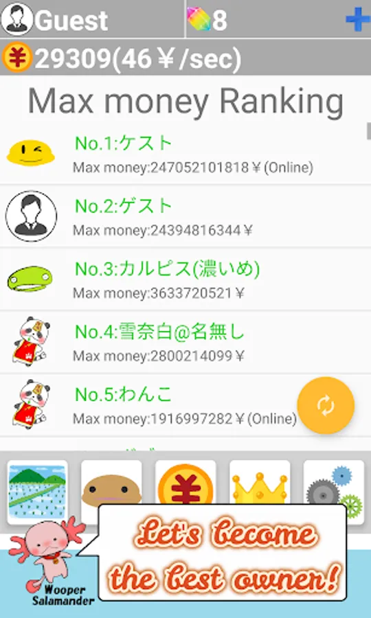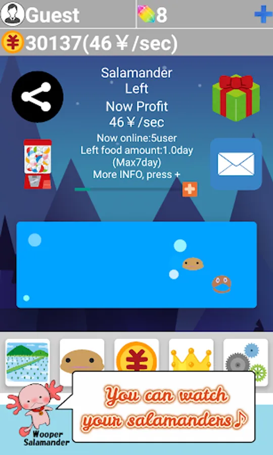 Next, tap salamander, next to paddy field of bottom bar. Then. you'll go to SHOP.