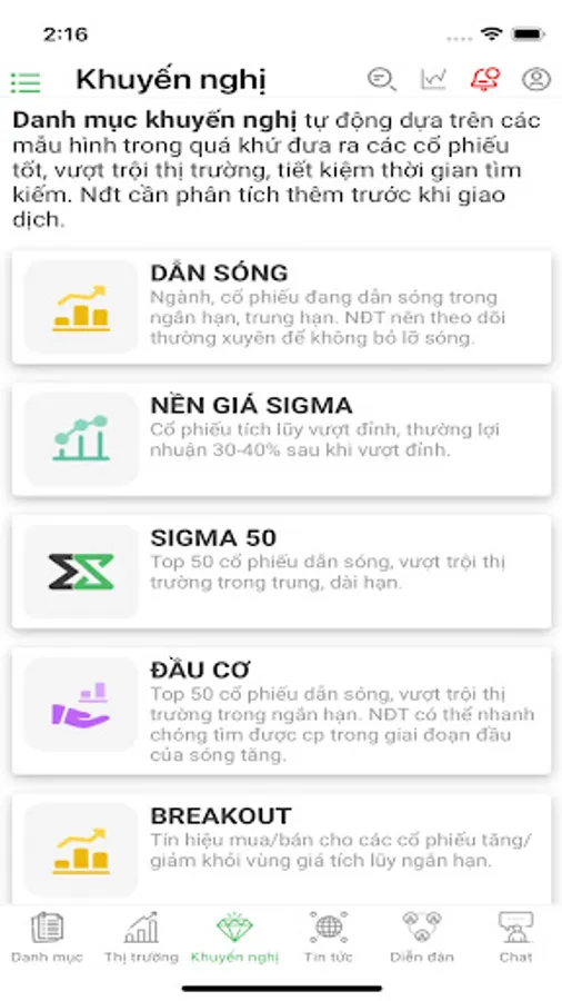 - Choose simple high-profit stocks with # Sigma50 - List of leading stocks, outperforming the market
