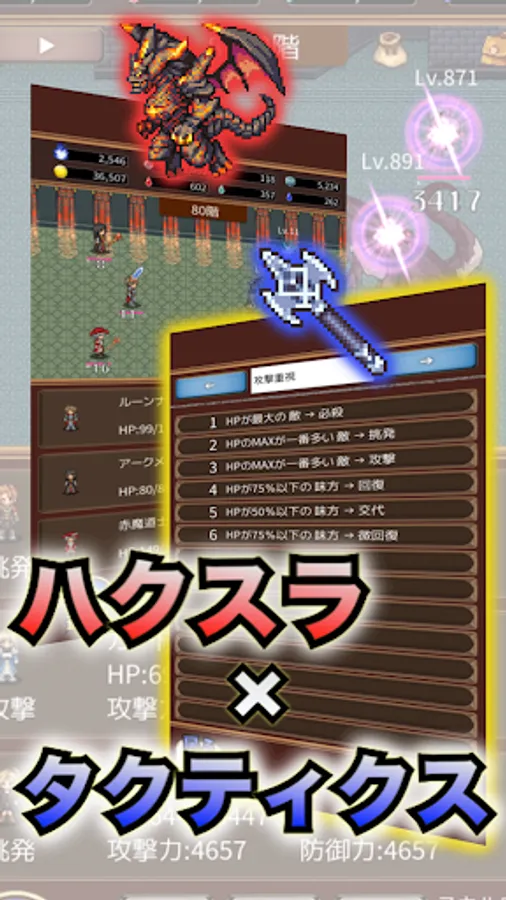 Tactics Order is a dot picture smartphone RPG that explores dungeons where enemies hide by deciding orders.