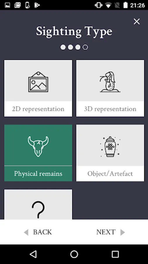 The app provides a guide detailing current knowledge about the animals under study and where their representations might be found. It allows contributors to submit photographs of ancient animal representations (i.e. 2-D painting, 3-D sculpture, physical remains, object/artefact or other). These can be taken in real-time and instantly geolocated, or uploaded from camera rolls with geolocation data added manually.