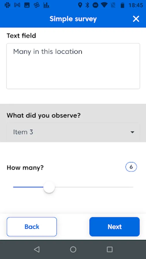 - Geolocation - record a point location, polygon or line transect.