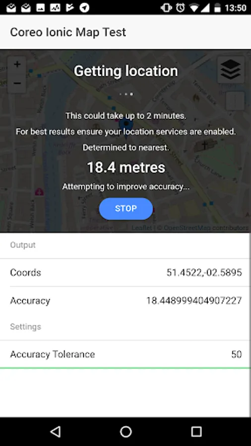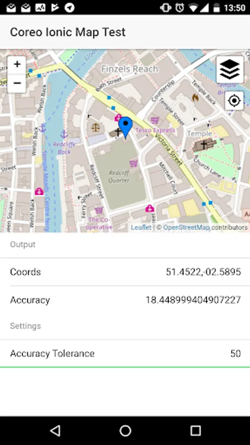 Ionic Coreo Map Test App Screenshots