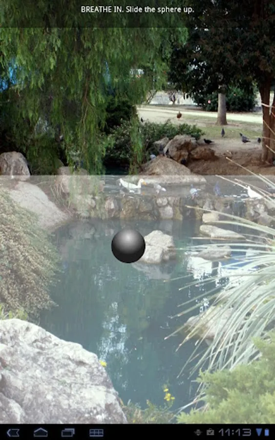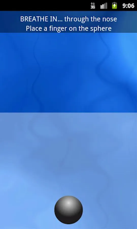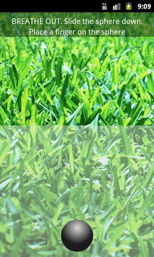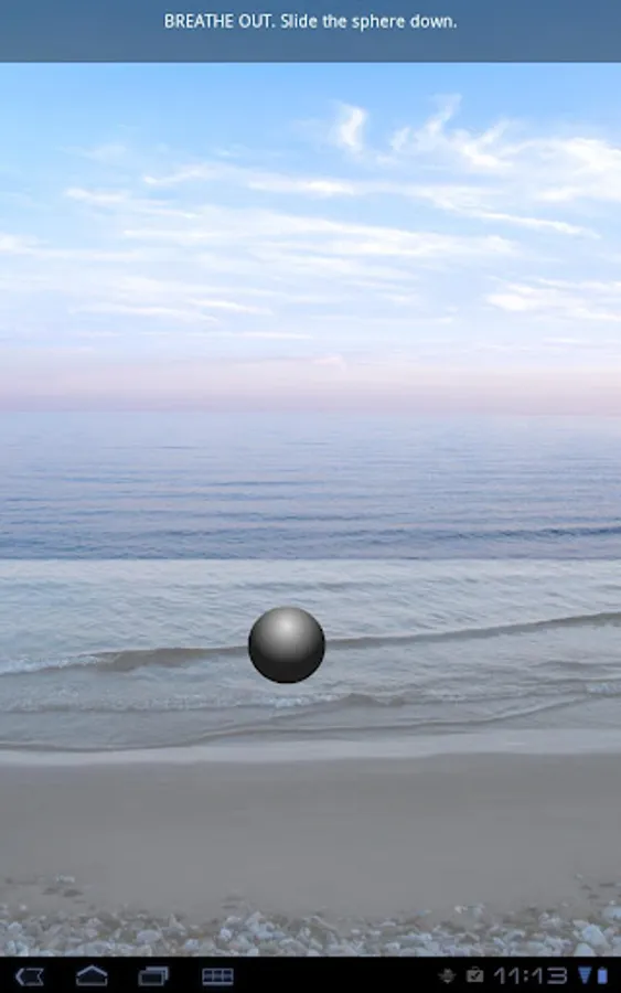 We present you with a relaxing image and a sphere. The idea is for you to put a finger on the sphere and focus on breathing in / out while you slide it up and down, keeping it within the moving panel that guides the inspiration and expiration rate and amplitude.