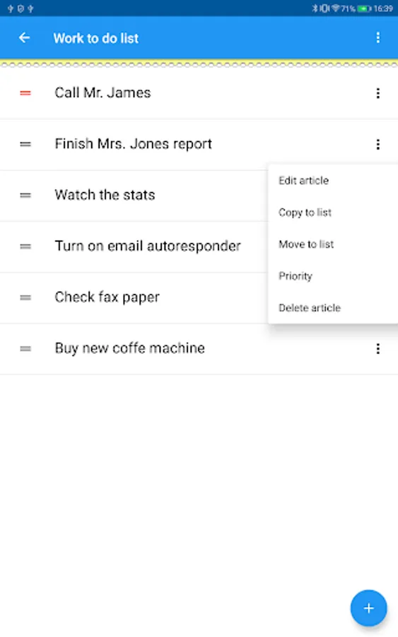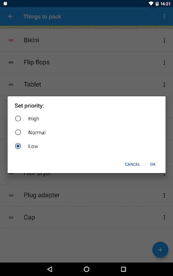 If you long press on an item on the list you can give it a priority (high, normal or low) as it is sometimes useful to stress some things on one's list, or maybe you can buy that item next time.