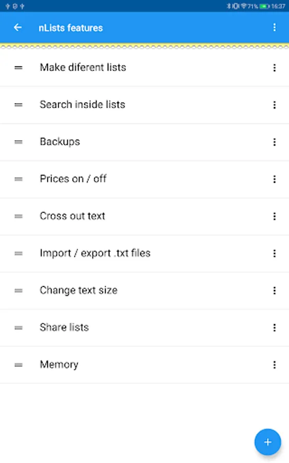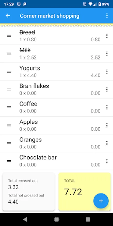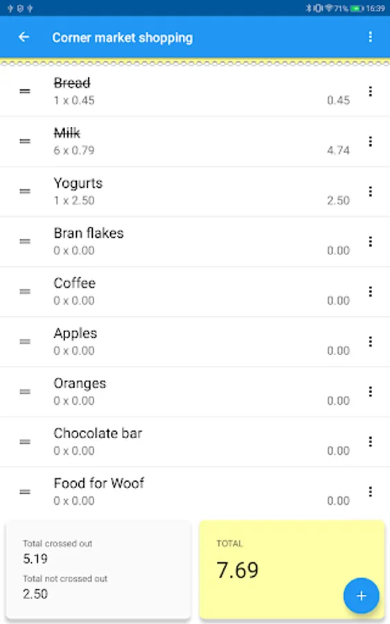 If it is a shopping list you can activate the show prices option. So when you cross each item off the list you will be able add the price. What for? This way you can use the total crossed out option that will show you how much you have spent so far.