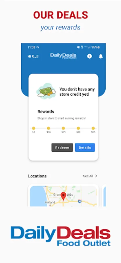 Now valued customers can earn points on every dollar spent—on every grocery purchase—at Daily Deals Food Outlet. Download the app to track your points, view featured deals & save!