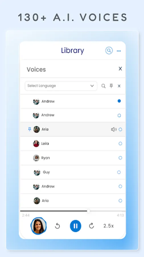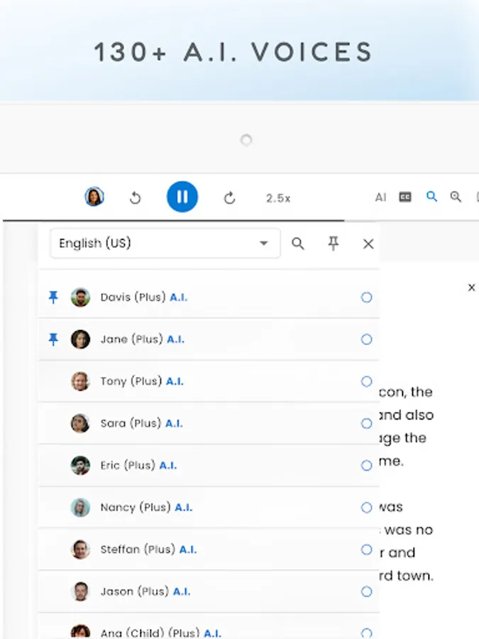 Have your books, PDFs, documents, and more read aloud to you by 140+ AI-powered voices in over 25 different languages/dialects!