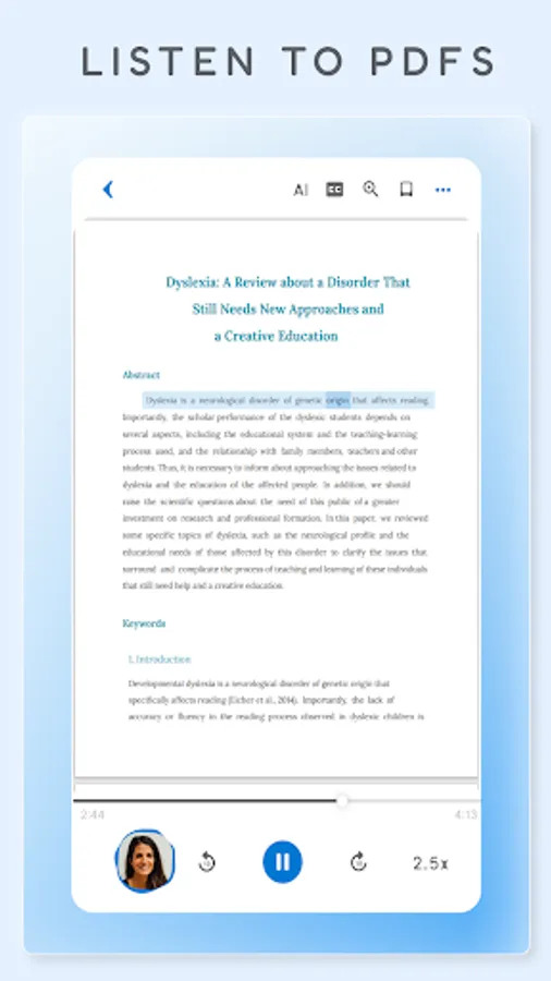 Our app has innovative features like the ability to convert and download text into MP3 files, OCR text recognition for PDFs and our camera scanner.