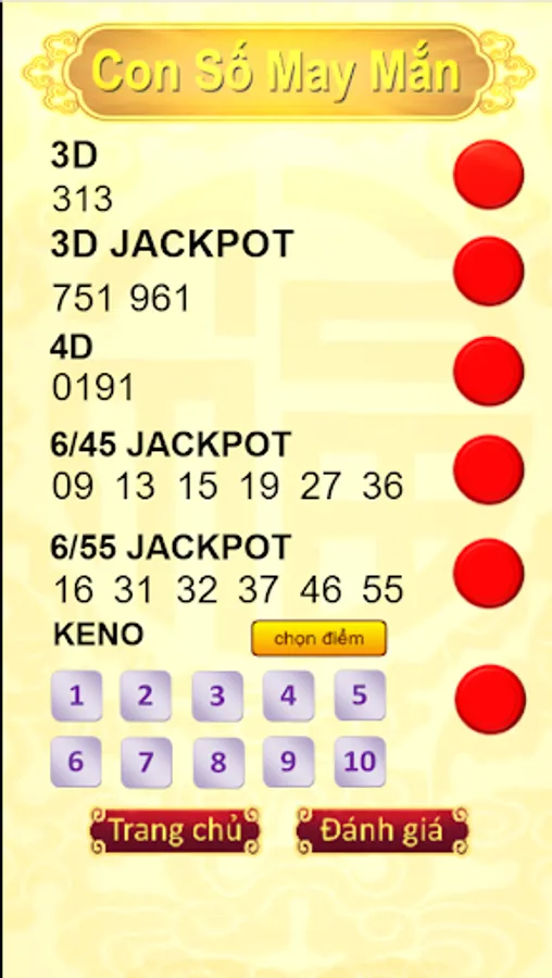This lucky number app generates random numbers for lottery and jackpot. You can generate numbers for 3D, 3D, 4D, 6/45, 6/55 and Keno jackpots.