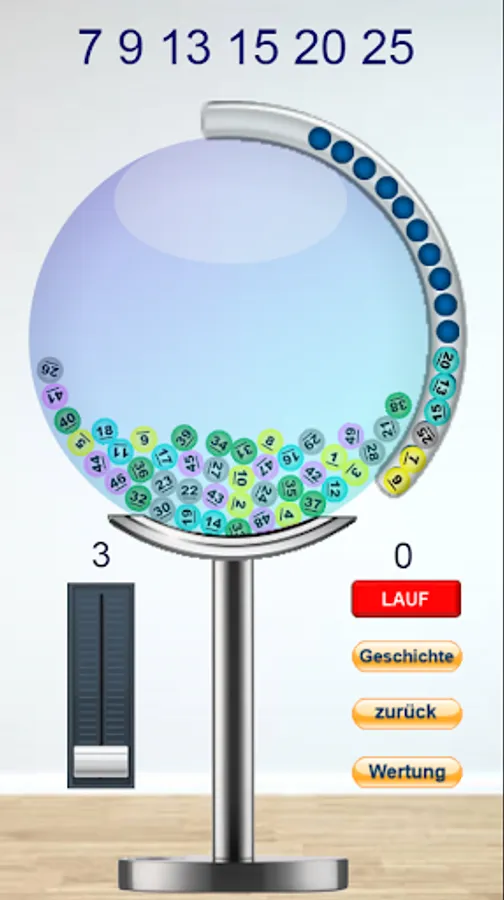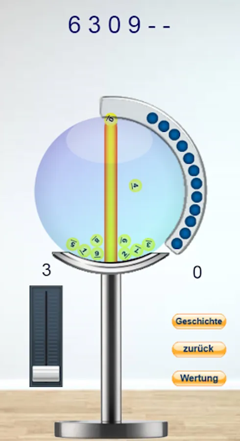 German lottery machine Generate random number for German lottery and jackpot. Numbers are drawn randomly using physics. You can customize the timer.