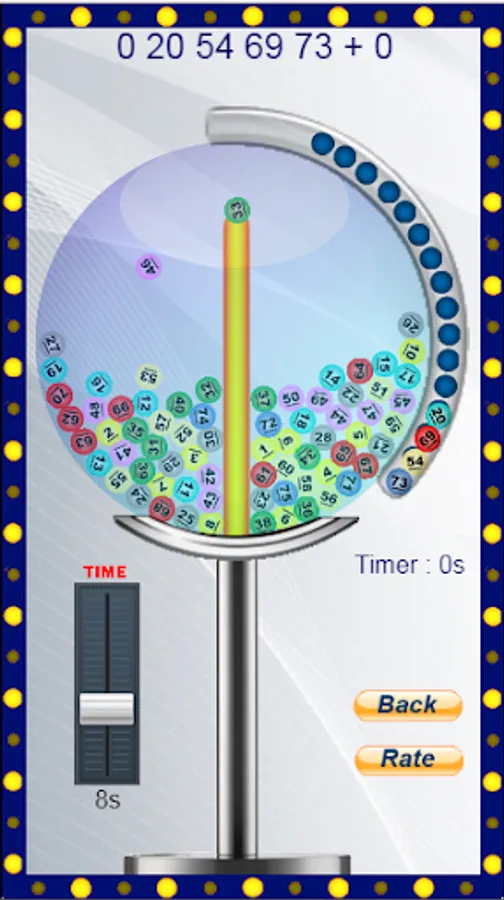 Lottery machine simulator to draw random numbers for US lottery using physic. Best lottery number generator for US lotto or lottery.
