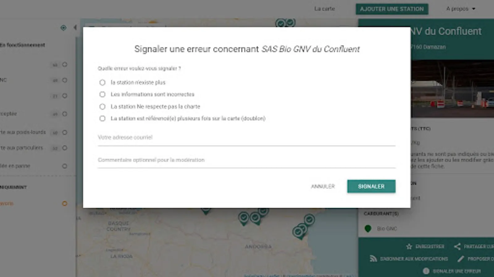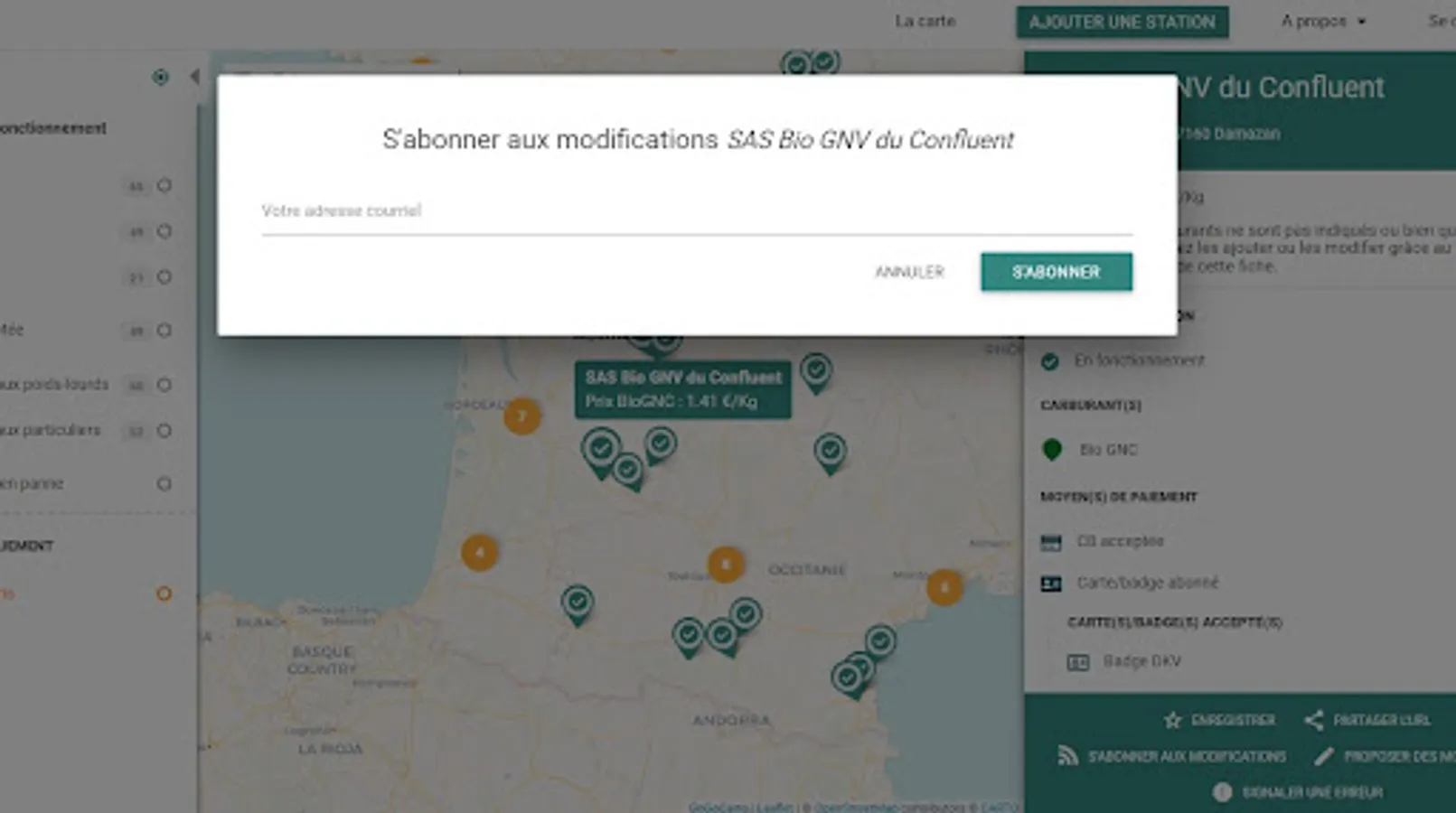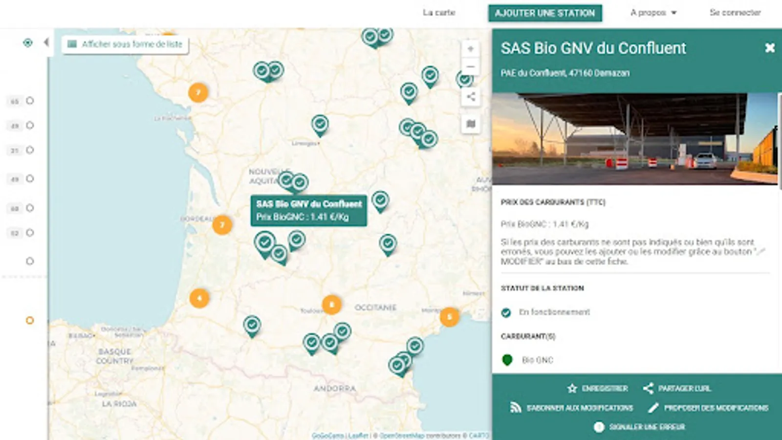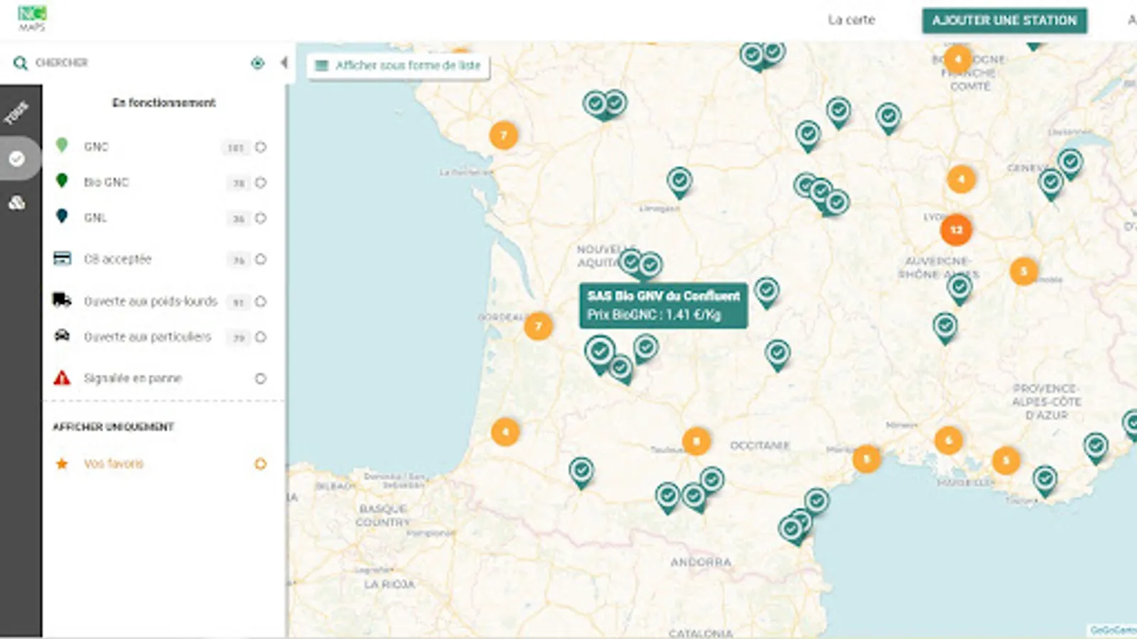 NG Maps is a collaborative, open source and free map of CNG, BioGNV and LNG stations.