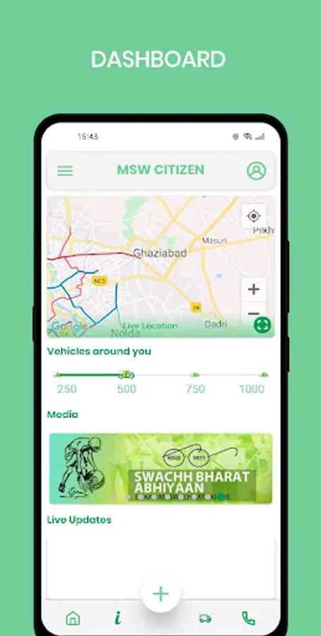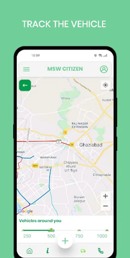 By this app citizen also can see vehicle which is serving near to his location / ward by selection of vicinity .