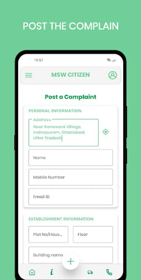 The app will take the location . Just type in the landmark of the complaint location. The complaint will then be assigned to the concerned person