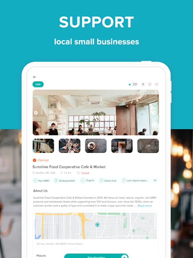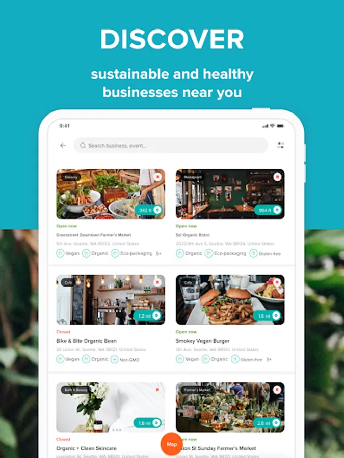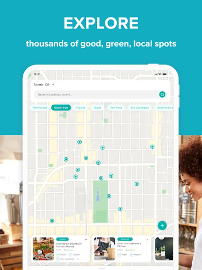 We match you with products and businesses based on your dietary and conscious consumer preferences. have a large directory of local, green businesses all over the USA, Canada, and the UK. Many of our local businesses can’t be found on google maps. Select from the following business categories: Cafe, Restaurant, Grocery, Artisan Produce, Health Store, Bath & Beauty, Handmade Craft, CSA, Yoga & Fitness, and Farmer’s Market, and many more