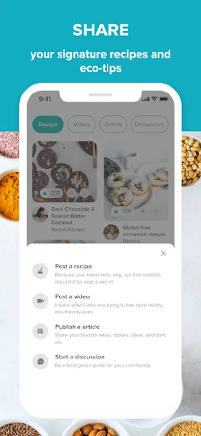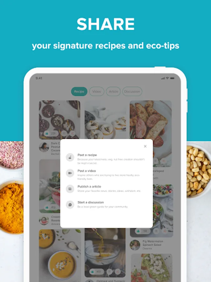 Add or find healthy, eco-friendly recipes!