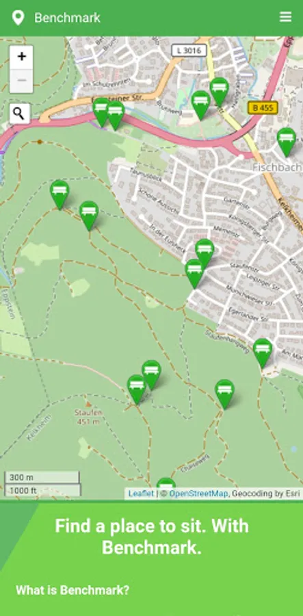 Benchmark is an App that allows you to find Benches in no time. This App is perfect for nature enthusiasts and of course for everyone who needs to find a seating accommodation quickly.