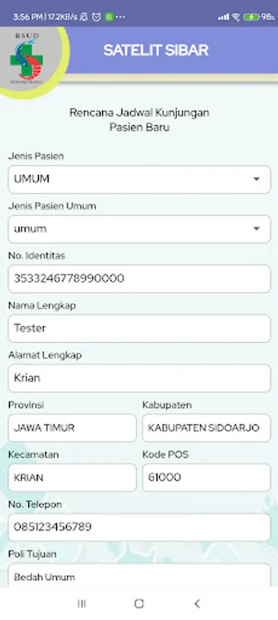 For all questions and complaints related to the SIBAR SATELLITE Application, please contact the Sidoarjo Barat Hospital - East Java