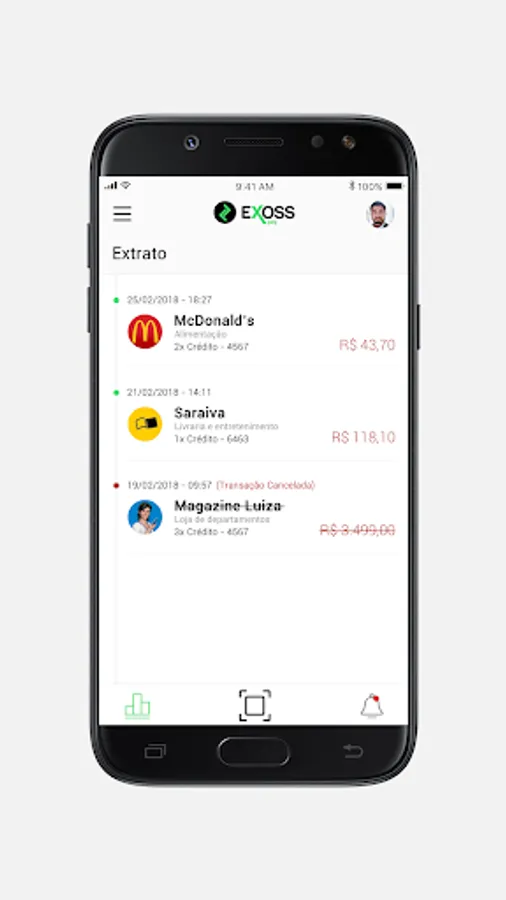 Through the EXOSS Pay application, the user can register their cards, make payments and consult their statement of payments.